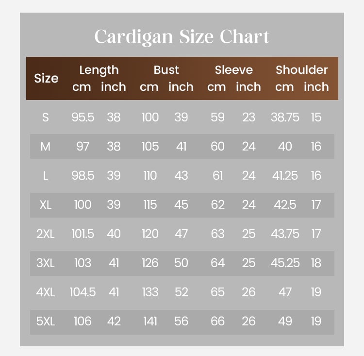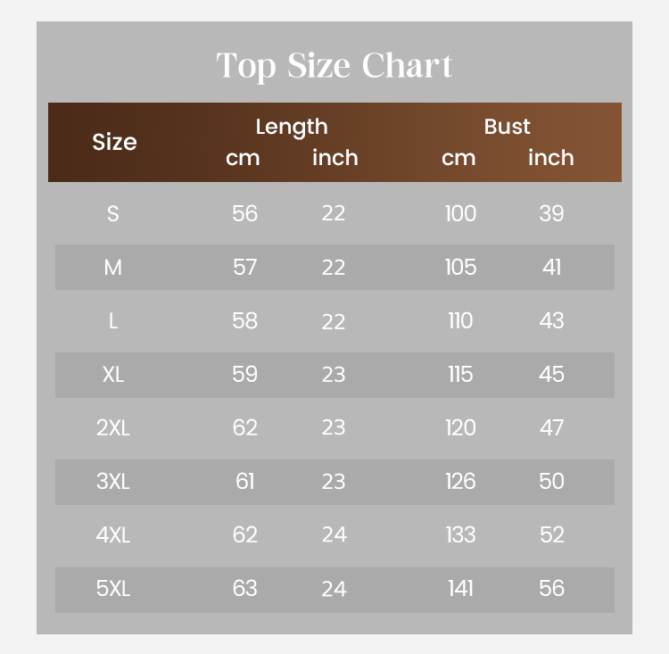 | Размер | Дължина (см/инч) | Бюст (см/инч) | Ръкав (см/инч) | Рамо (см/инч) |
