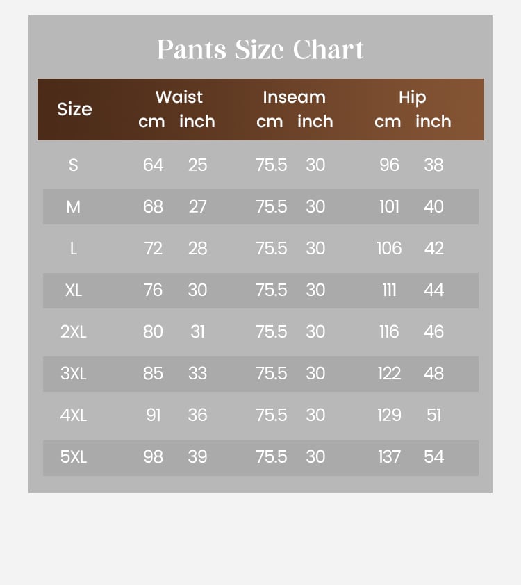 | Размер | Талия (см/инч) | Вътрешен шев (см/инч) | Ханш (см/инч) |